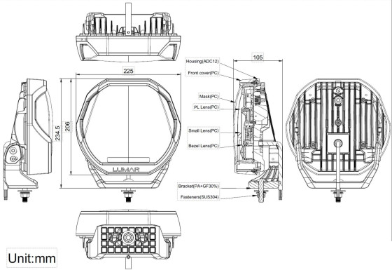 Varningsljus R65, 200 watt, 1 lux 605m